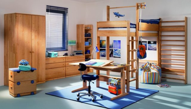 3. Детские из натурального дерева, с кроватями, полками, столами.